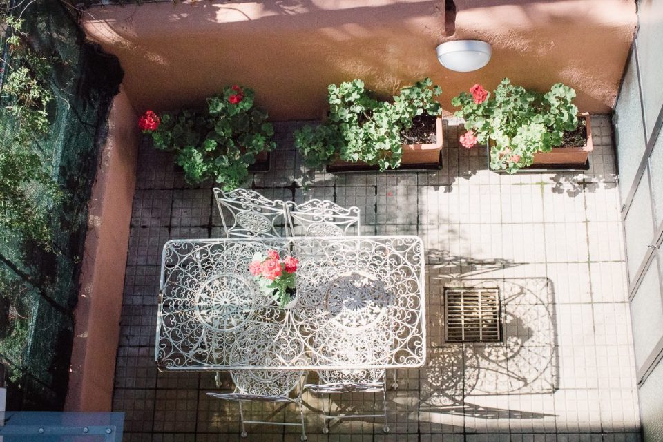 con tavolo e sedie: l'angolo ideale per sorseggiare il caffè del mattino (che vi offriamo noi!) o un calice di vino al tramonto.